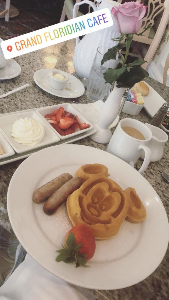 Start your day off right by enjoying a big breakfast. Don’t waste time in the park trying to get Starbucks in the morning — that’s quality ride time! Make sure you eat before getting into the Magic Kingdom so your stomach doesn’t growl while you wait on line for Space Mountain. Plan out a breakfast reservation where you experience the magic of Disney before you even enter the theme parks. A Mickey Waffle fills you up until lunch and makes breakfast fun.